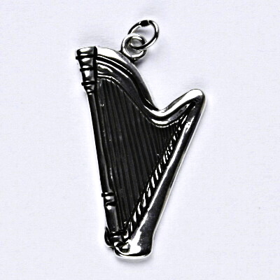 Stříbrný přívěsek harfa o velikosti 31 x 15 mm.