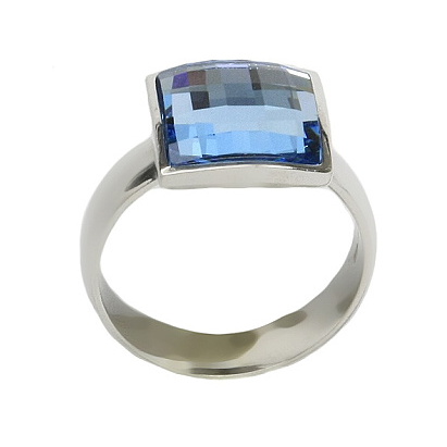 Stříbrný prstýnek zdobí krystal Swarovski a barvě Akvamarine .